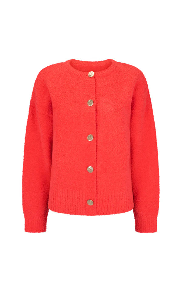 The Aime Cardigan in Coral, is made in a gorgeous fluffy knit fabric. This style features gold buttons, a relaxed crew neckline and ribbed cuffs and hem. Versatile and comfortable, the Aime Cardigan is the ideal layering piece. Wear yours with your fave AJ trackpants and sneakers or Grace Pant for an effortless leisurewear look.