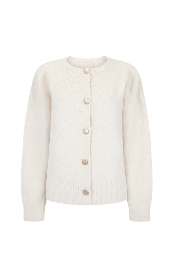 The Aime Cardigan in Milk, is made in a gorgeous fluffy knit fabric. This style features gold buttons, a relaxed crew neckline and ribbed cuffs and hem. Versatile and comfortable, the Aime Cardigan is the ideal layering piece. Wear yours with your fave AJ trackpants and sneakers or Grace Pant for an effortless leisurewear look.