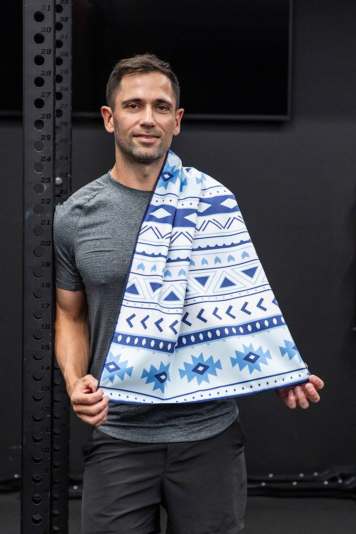 This blue gym towel will make the perfect addition to your workout! It is made out of a special quick dry material meaning that it is ultra absorbent, lightweight, compact and odour free! Which makes our funky towels perfect for the gym, cycle, pilates, tennis, cricket, swimming, camping, hiking, sauna, spa or for any sweaty occasion!