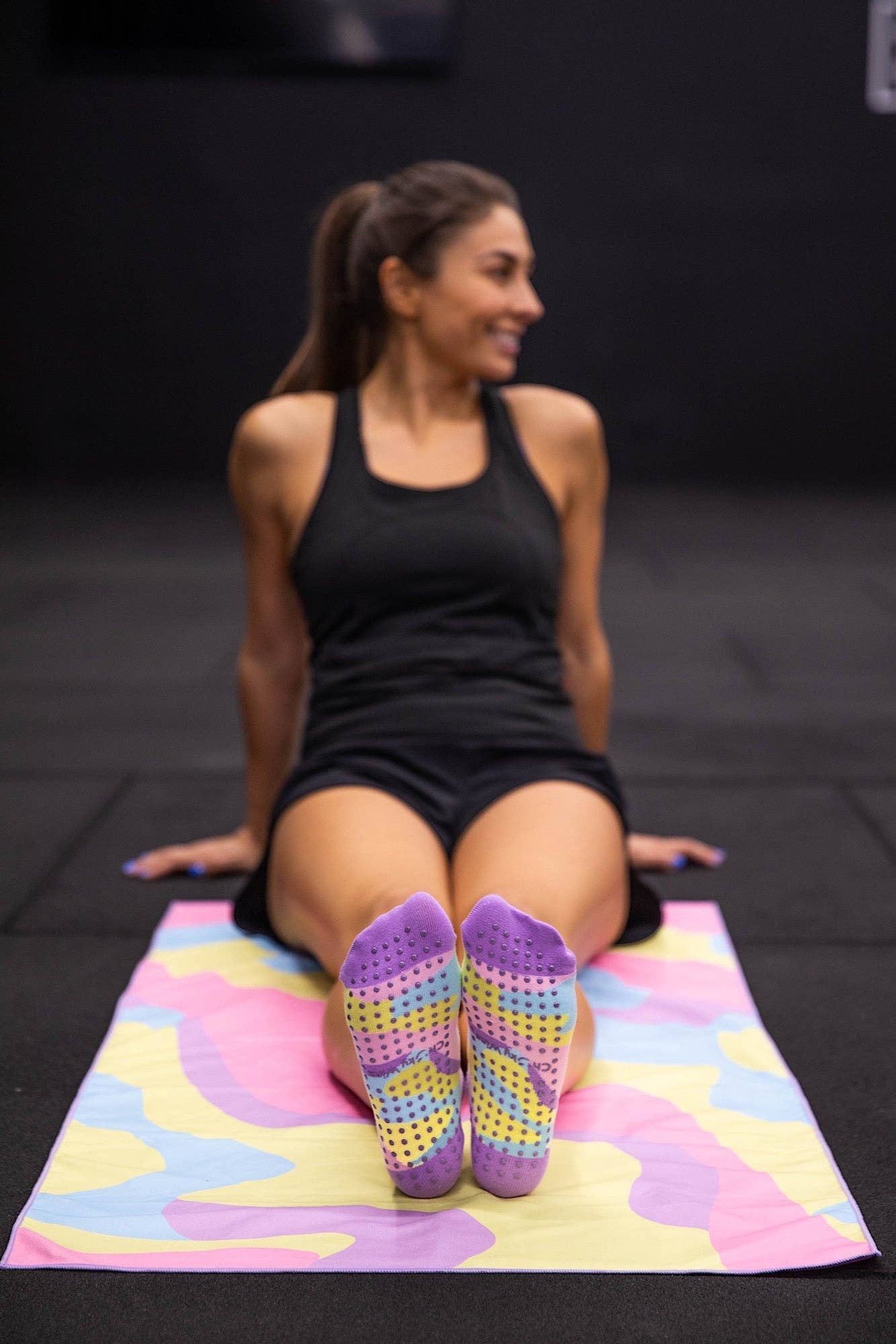If you love your pastels, get ready to love our rainbow wave grip sock design!