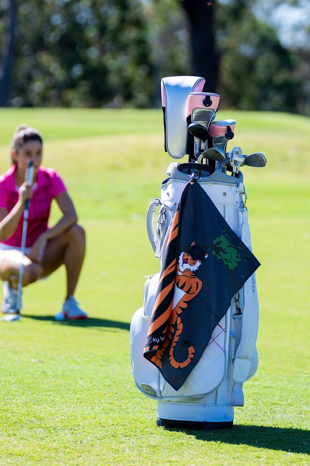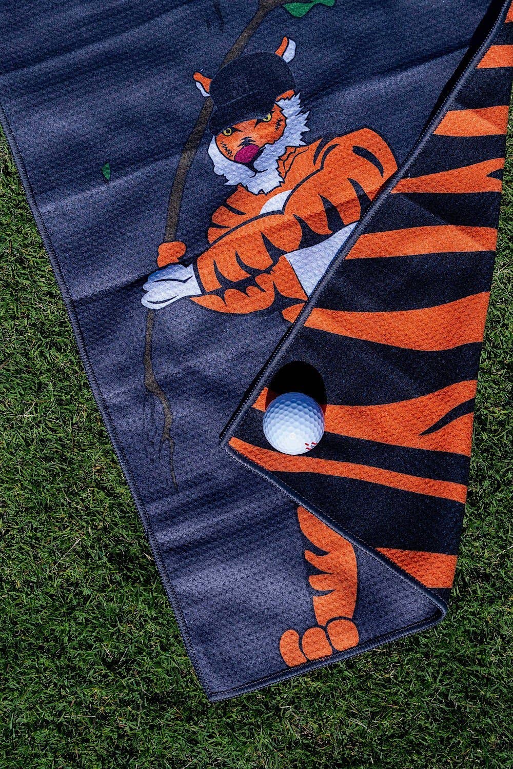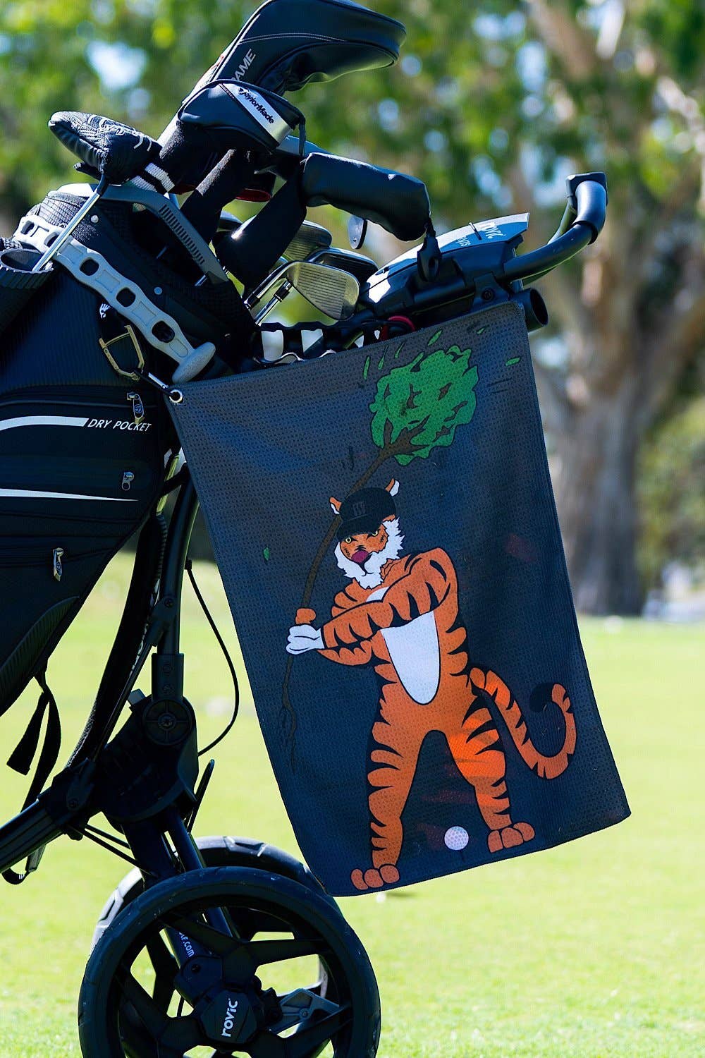 The classic Jungle Cat golf towel made with a special blend of waffle texture fabric, which is not only extremely effective at getting deep into the grooves of your clubs when cleaning but is also scratch free! Waffle texture fabric for scratch free cleaning to help wipe away dirt from your chunked shots.
