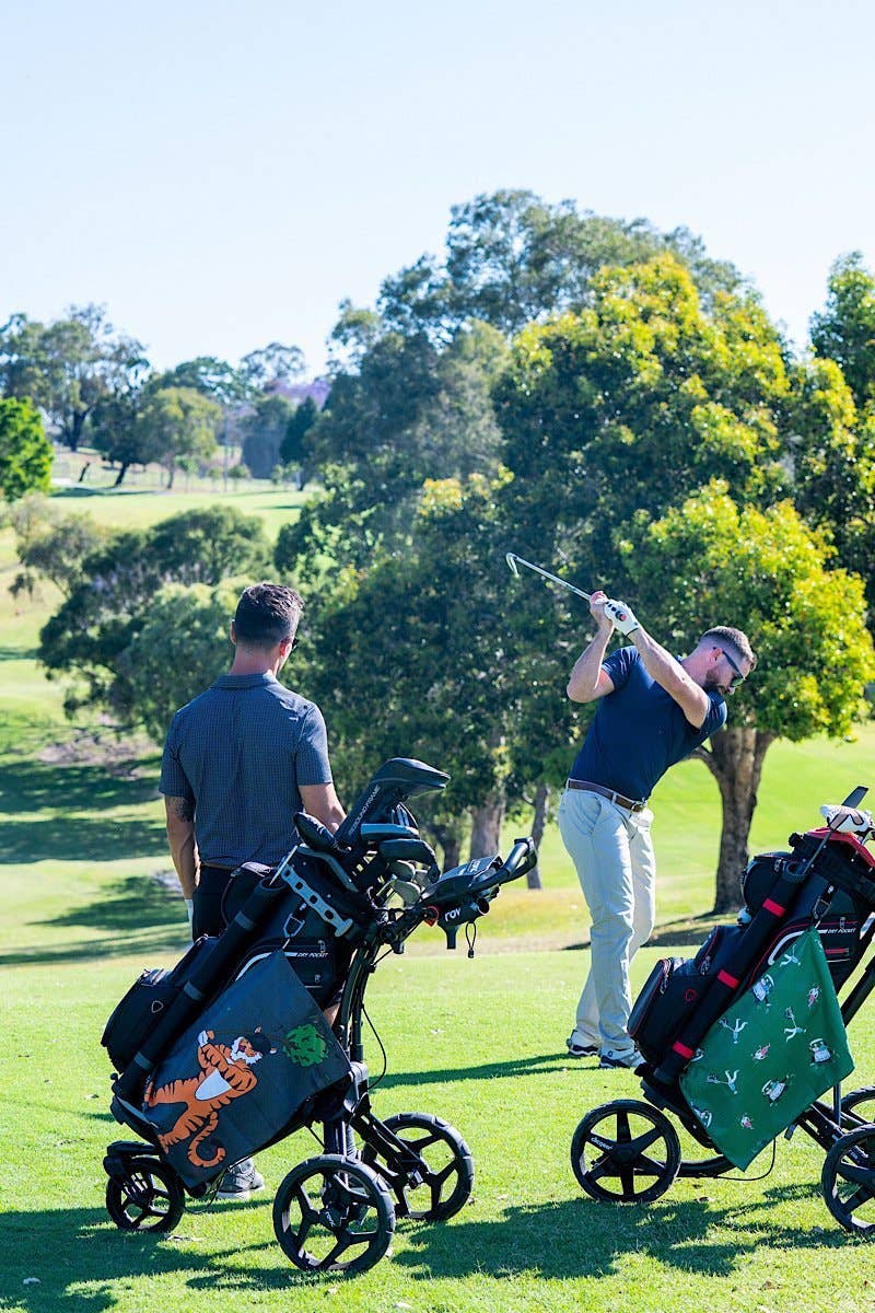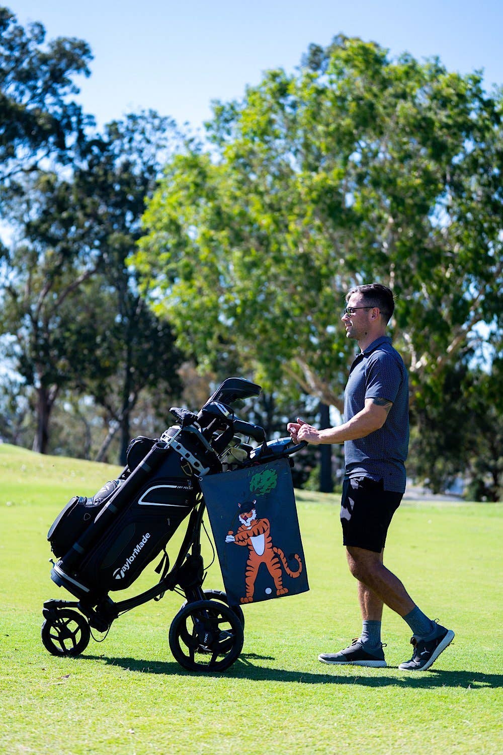 Sand free incase you get caught in the bunker, just give it a shake. Carabiner Clip for easy attachment. 60 x 40cm Carabiner Clip Attached