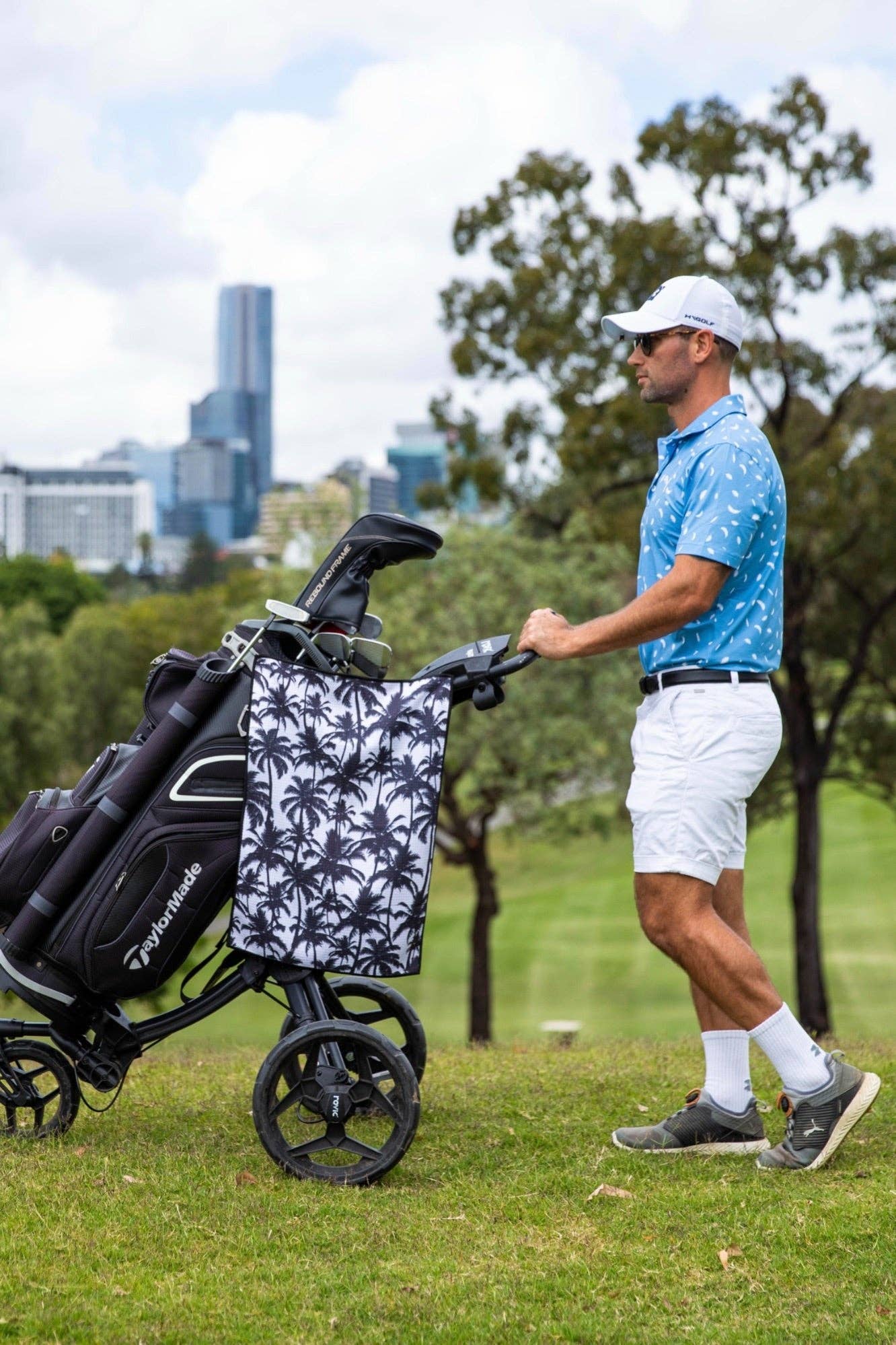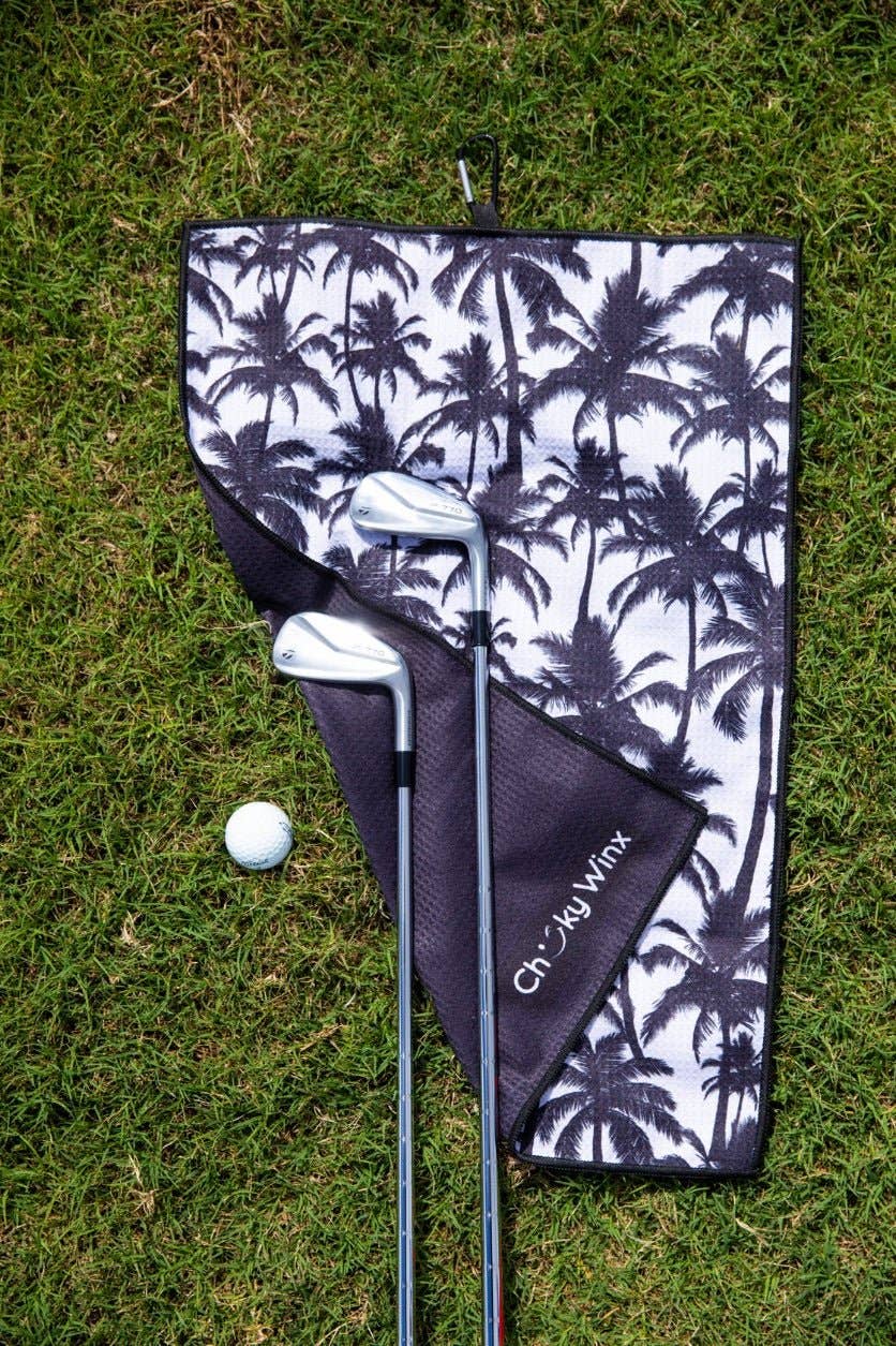 Our favourite palm tree golf towel is made with a special blend of waffle texture fabric, which is not only extremely effective at getting deep into the grooves of your clubs when cleaning but is also scratch free! Therefore, giving your ball more spin and better control on the course.